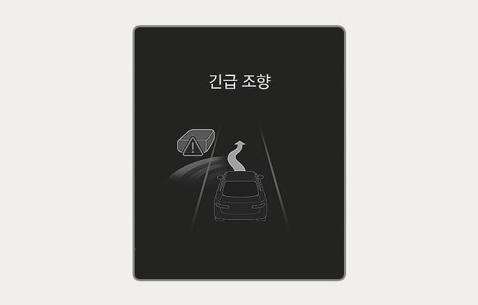 긴급 조향으로 추가 사고가 예상될 경우 충돌 경고로만 위험을 알립니다.