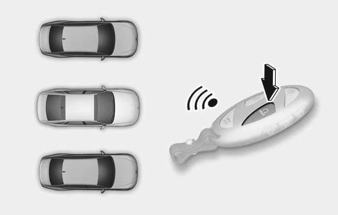 차량으로부터 약 4 m 내에서 스마트 키를 조작해야 합니다. 스마트 키 버튼을 누르고 있어도 차량이 이동하지 않으면 작동 범위 내로 이동한 후 스마트 키 버튼을 다시 누르십시오.
