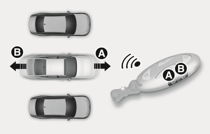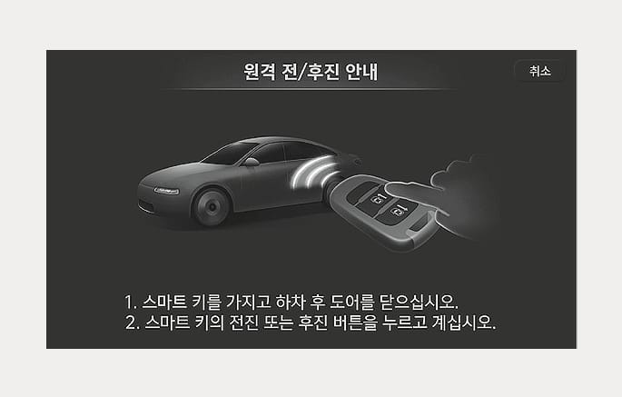 원격 전/후진 기능은 스마트 키를 이용하여 차량 밖에서 원격으로 작동할 수 있습니다.