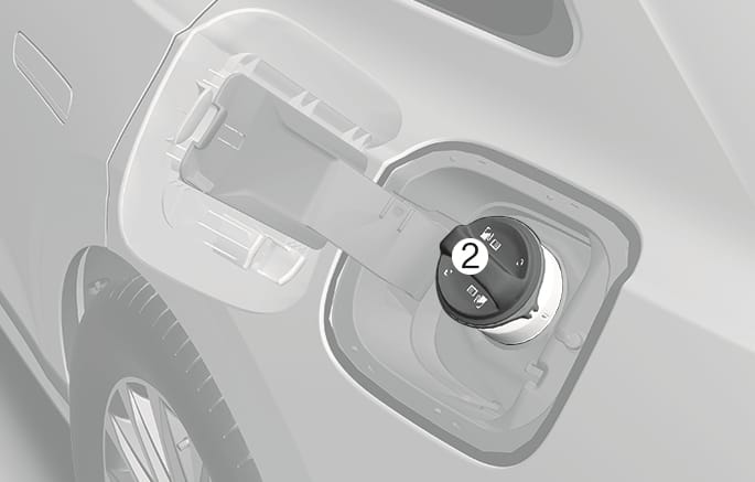 연료 주입구 캡(2)을 시계 반대 방향으로 돌려 여십시오.