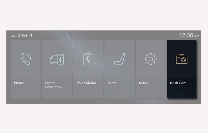To view recorded Dash Cam footage, select Dash Cam from the infotainment system home screen.