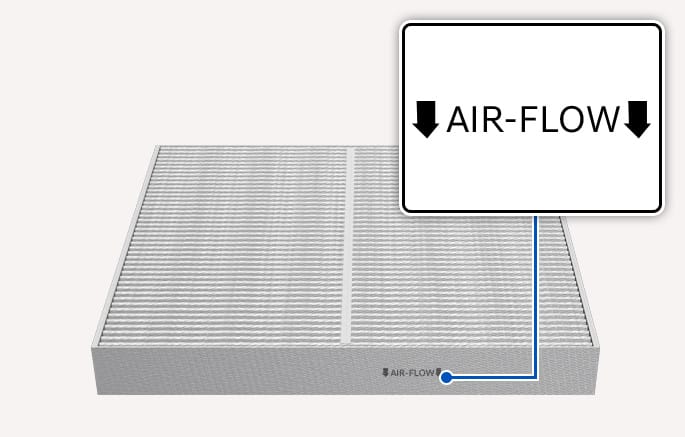Install a new cabin air filter with the arrow symbol ↓ facing down, to improve effectiveness.