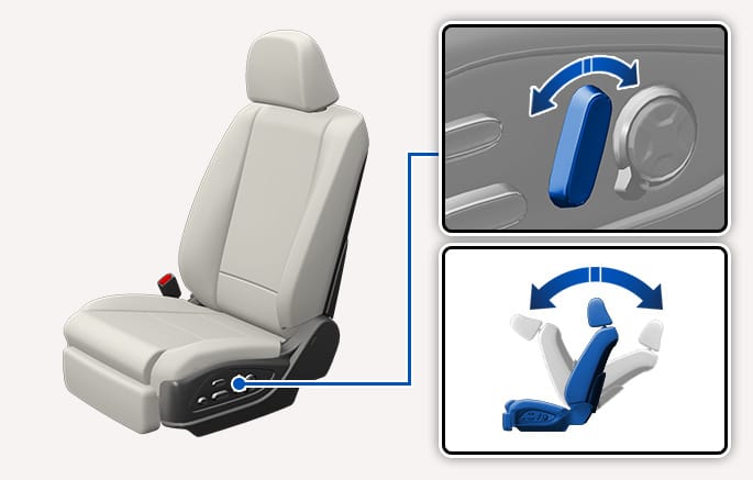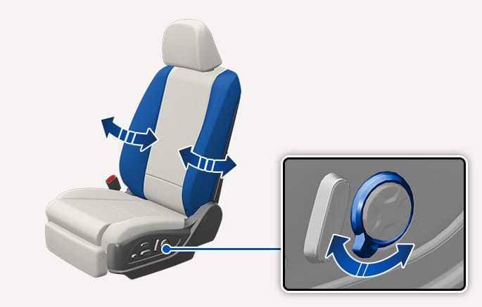 Push the adjustment lever clockwise, the seatback bolster is adjusted inward. Push the lever counterclockwise, the seatback bolster is adjusted outward.