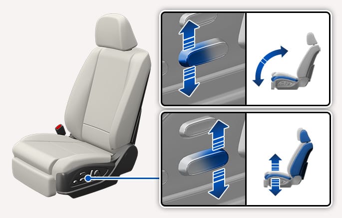 The front seat can be adjusted by using the control switches located on the outside of the seat cushion.