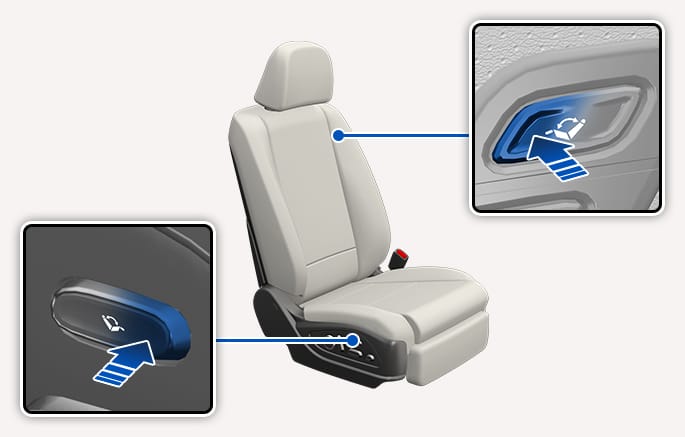 Push the seat’s forward/rearward switch towards the forward position and the seatback angle control switch towards the upright position, simultaneously for more than 2 seconds.