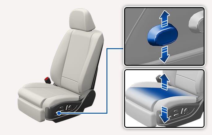 Push the front or rear portion of the control switch up or down to control the seat cushion angle or height.