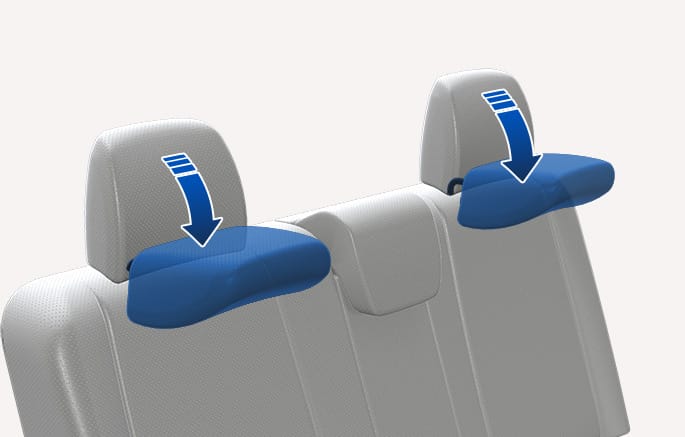 To fold the head restraint wings, hold and pull them inwards with your hands. The degree to which the head restraint supports the occupant's head is adjustable.