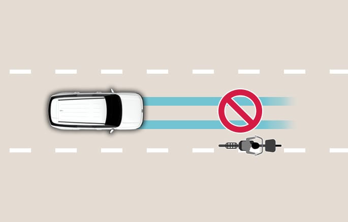 The illustration above shows the image the front view camera and front radar are capable of detecting as a vehicle, motorcyclist, pedestrian, or cyclist.