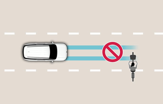 The vehicle or motorcyclist in front is at an angle to your vehicle