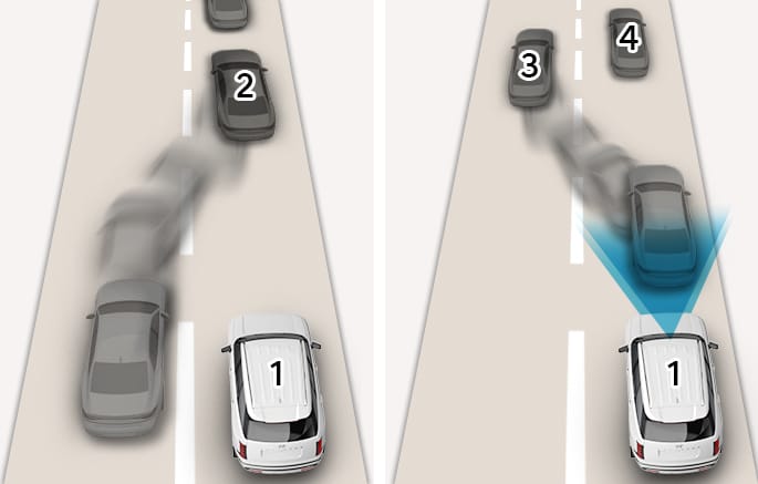When the vehicle moves into your lane from an adjacent lane, it cannot be detected by the sensor until it is in the sensor's detection range. FCA may not immediately detect the vehicle when the vehicle changes lanes abruptly.