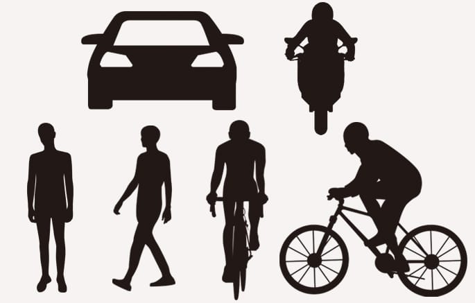 The pedestrian or cyclist is moving laterally.