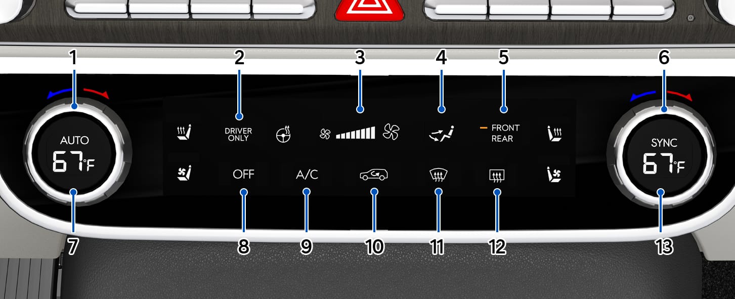 - Front/Rear climate control selection