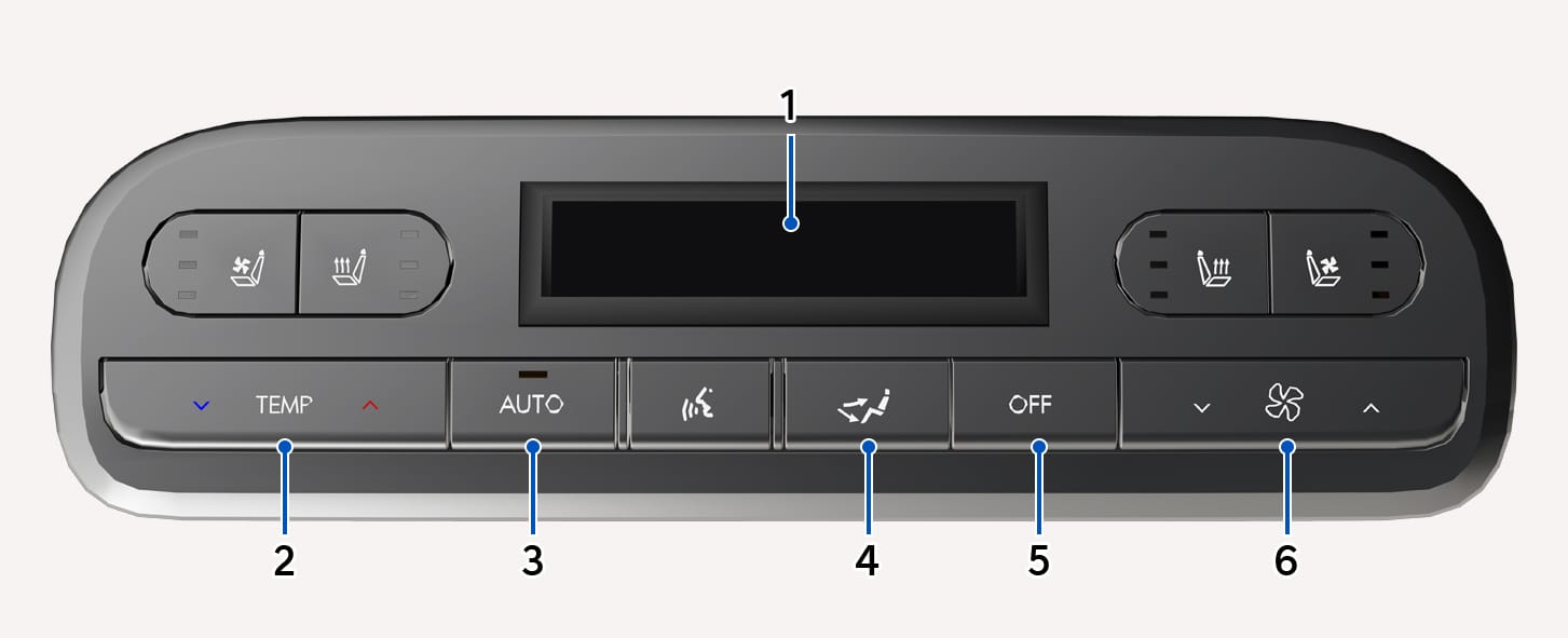 Temperature, Mode selection (air flow direction), and Fan speed can be controlled from the rear seat. However, if Setup > Vehicle > Climate > Climate Features > Lock Rear Climate Controls is selected, the rear climate control can be operated only from the front seat.