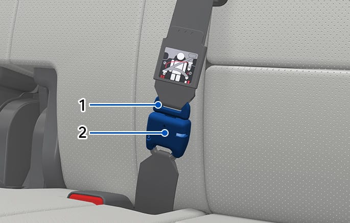 Insert the tongue plate (1) into the buckle (2) until an audible “click” is heard, indicating the latch is locked. Make sure the belt is not twisted.