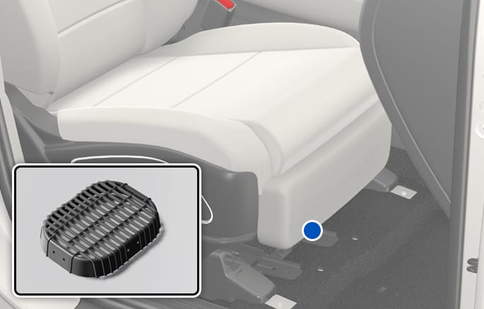 The hybrid battery cooling duct is located below the passenger seat. The cooling duct cools down the hybrid battery. When the hybrid battery cooling duct is blocked, the hybrid battery may be overheated.