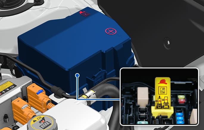 High voltage cut-off switch is a device located inside the engine compartment to block the battery's high voltage when your vehicle is inspected at an authorized HYUNDAI dealer.