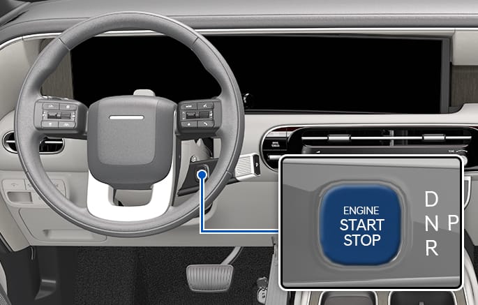 To start the engine, depress the brake pedal and press the Engine Start/Stop button with the gear in the P (Park). For your safety, start the engine with the gear in the P (Park) position. |
