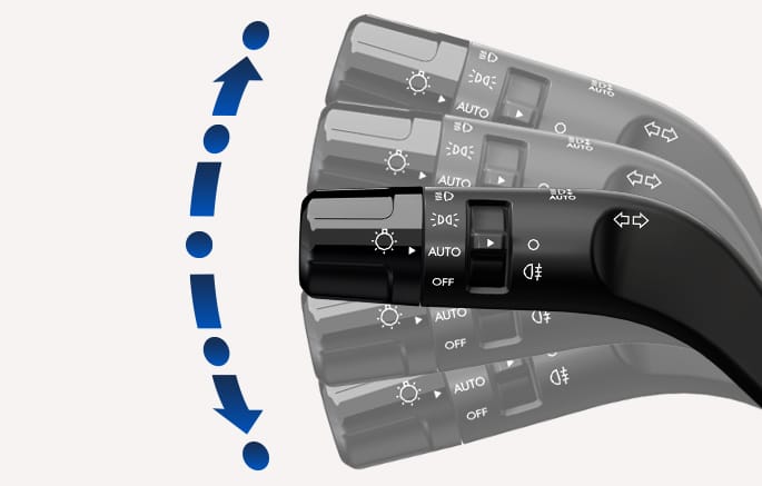 Highway Lane Change Assist operates when the turn signal lever is pushed slightly. The turn signal indicator blinks until the lane change is complete even when the turn signal lever is released to the center.