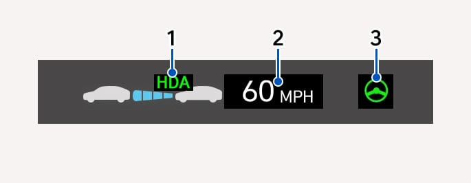 The indicators appear on the cluster display as shown below depending on the status of HDA.