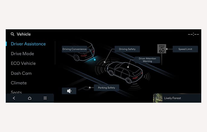With the vehicle on, select Setup > Vehicle > Driver Assistance from the settings menu in the infotainment system to set whether to use each function.