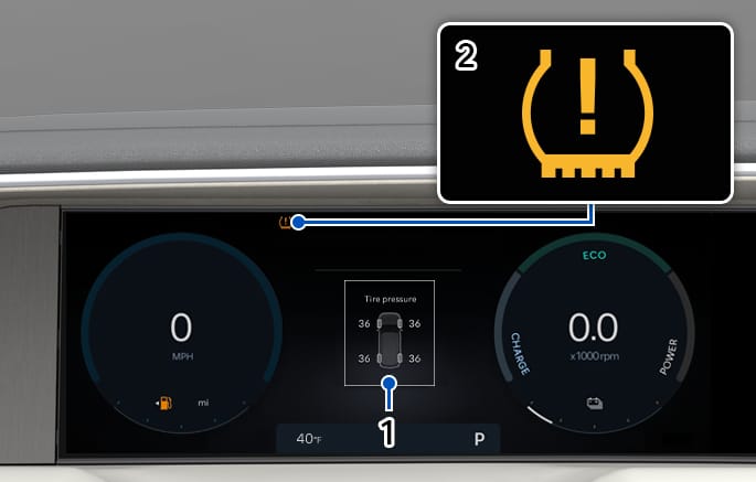 If there is a malfunction with the TPMS, the individual tire pressures on the cluster display are not be available. Have the system inspected by an authorized HYUNDAI dealer as soon as possible.