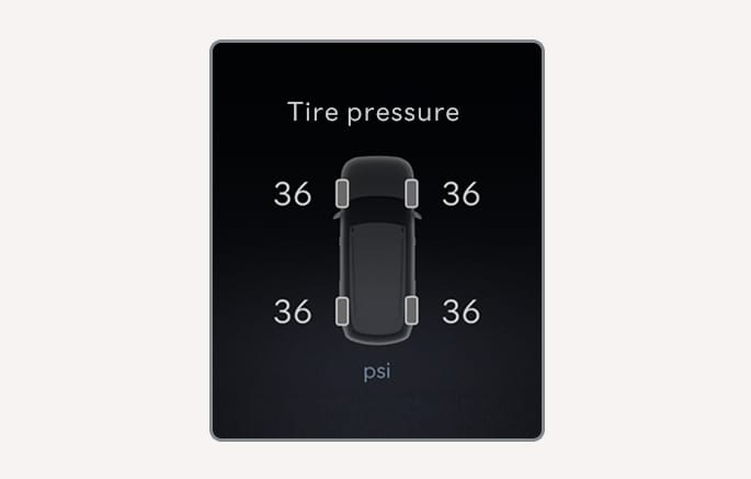 Tire pressure appears after a few minutes of driving. If the tire pressure does not appear when the vehicle is stopped, the message, 'Drive to display' appears.