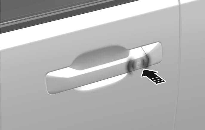 스마트 키를 휴대한 상태로 앞좌석 바깥쪽 도어 핸들의 잠금 센서부를 터치하면 모든 도어가 잠금 상태가 됩니다.