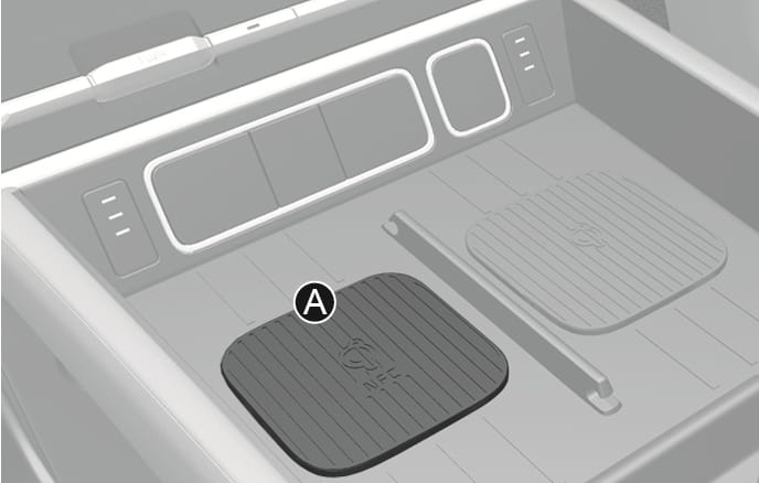등록된 스마트폰이 실내 인증 패드(무선 충전 패드)[A]에 올려져 있을 경우 시동을 걸 수 있습니다. 따라서, 이러한 차량 시스템을 모르는 사람이나 어린이를 혼자 차 안에 남겨 두면 예기치 못한 사고가 일어날 수 있으므로 주의하십시오. 또한, 차량 도난의 우려가 있으므로 차를 벗어날 때는 반드시 디지털 키가 등록된 스마트폰을 휴대하십시오.