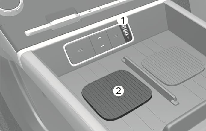 중앙 콘솔에 스마트폰 무선 충전을 위한 시스템이 있습니다.