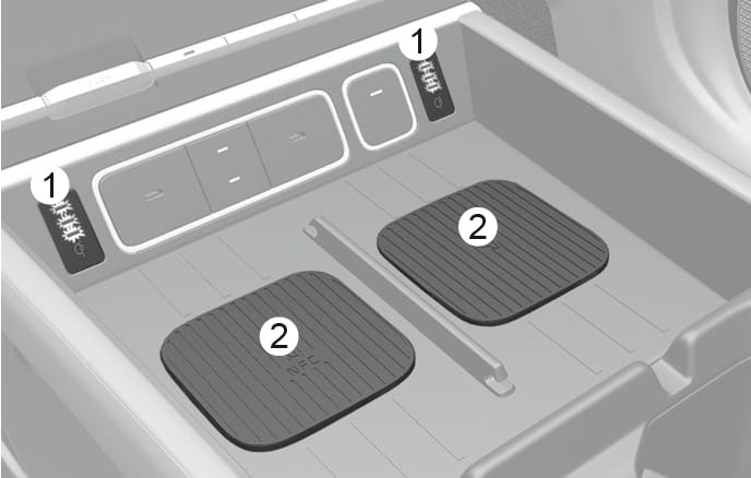 듀얼 무선 충전 시스템은 전석 1st, 전석 2nd 를 선택하여 싱글 또는 듀얼로 선택하여 사용하실 수 있습니다(사양 적용시).