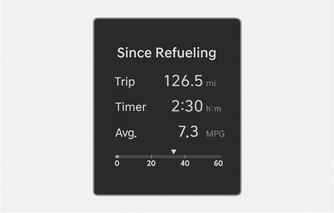 After the vehicle has been refueled, the trip distance, total driving time and average fuel economy appear.
