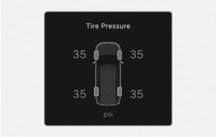 The tire pressure of each tire appears.