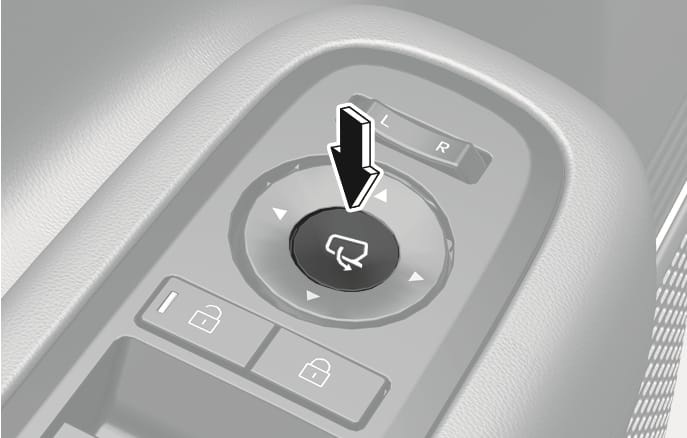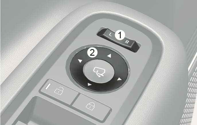 Press the switch (1) either to the L (left side) or R (right side) to select the side view mirror you want to adjust.
