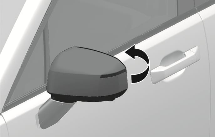 To fold the side view mirror, grasp the housing of the mirror and then fold it toward the rear of the vehicle.
