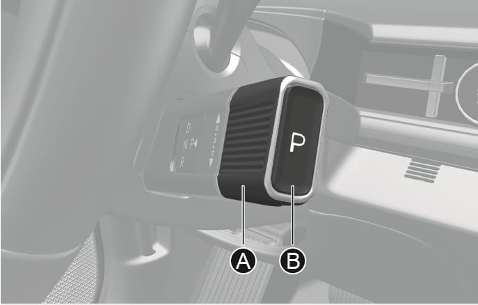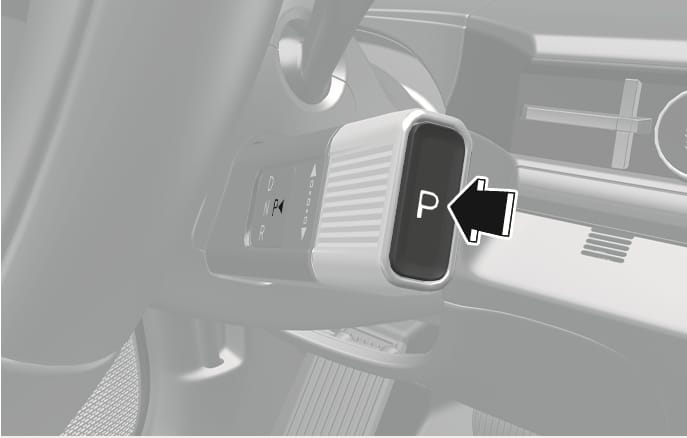 To shift the gear to P (Park), press the P button while depressing the brake pedal.