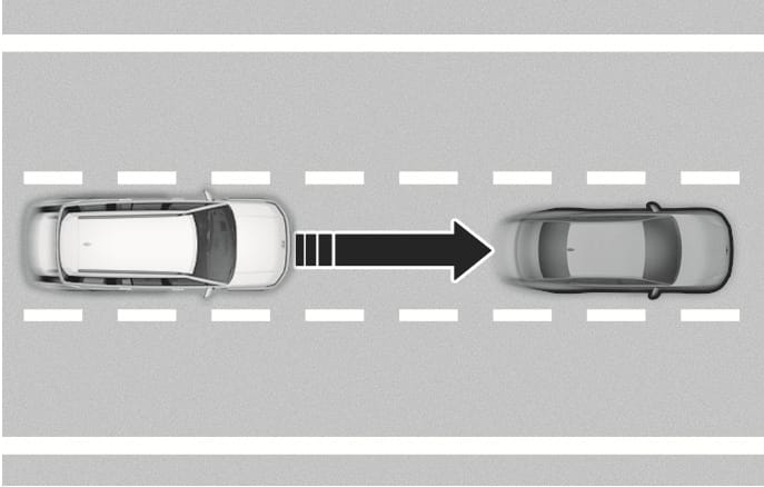 Highway Driving Assist helps maintain a set distance and speed from the vehicle ahead while driving on a highway main section and helps center the vehicle in the lane.