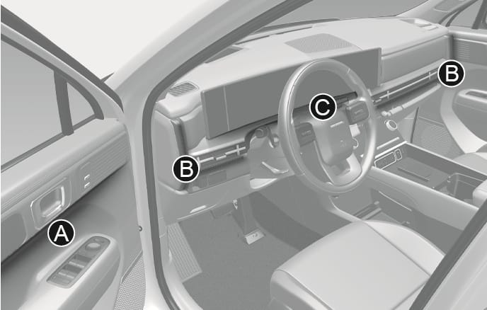 - Driver seat door, passenger seat door