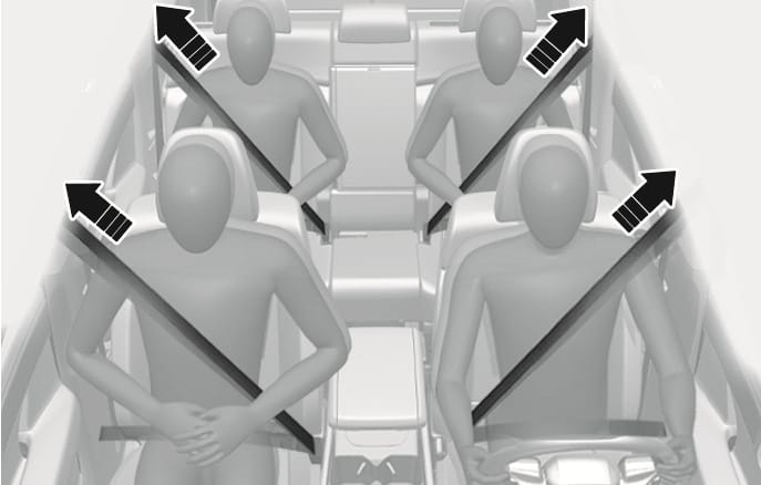 Your vehicle is equipped with driver's and front passenger's and rear passengers pretensioner seat belts (retractor pretensioner). The pretensioner makes sure the seat belts fit tightly against your body in certain frontal or side collision(s). The pretensioner seat belts may be activated in some crashes where the frontal or side collision(s) is severe enough, together with the airbags.