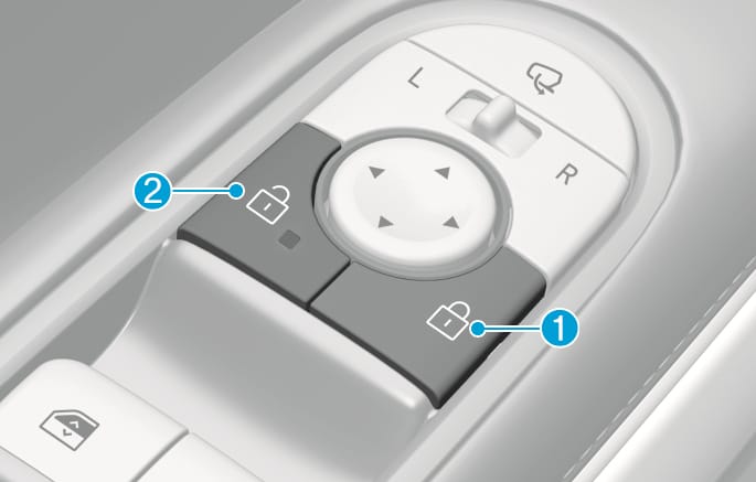 Wenn eine Tür geöffnet wird, werden die Türen nicht verriegelt, auch wenn der zentrale Türverriegelungsschalter (1) gedrückt wird.