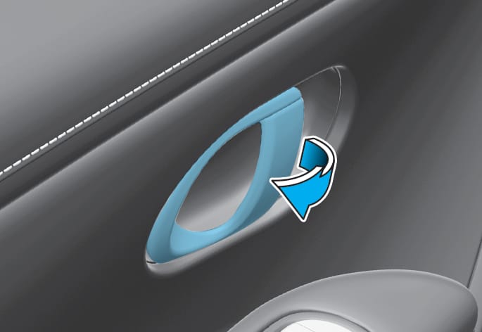 Wenn bei verriegelter Tür einmal der Tür-Innengriff gezogen wird, wird die Tür entriegelt. Wenn der Innentürgriff zweimal gezogen wird, öffnet sich die Tür.