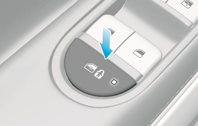 Drücken Sie die Türverriegelungstaste länger als 3 Sekunden. Die Türen werden verriegelt und die Fenster geschlossen, solange Sie die Türverriegelungstaste drücken.