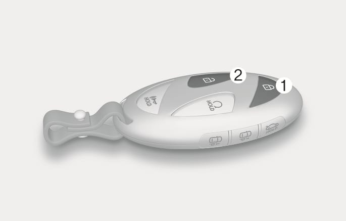 Sie können die Fensterbewegung auch bei ausgeschaltetem Fahrzeug steuern, indem Sie die Türverriegelungstaste (1) oder die Türentriegelungstaste (2) drücken.