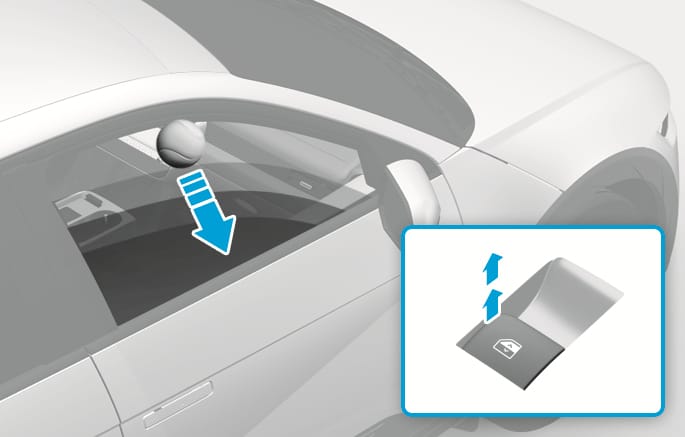 Schließen Sie das Fenster und halten Sie den Fensterheberschalter danach noch mindestens eine Sekunde lang gezogen.