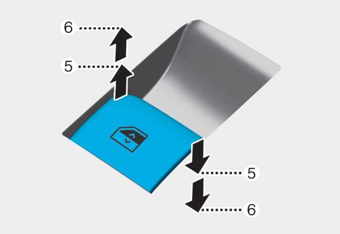 Drücken Sie den Fensterschalter in die erste Rastposition (5). Lassen Sie den Schalter los, wenn das Fenster gestoppt werden soll.
