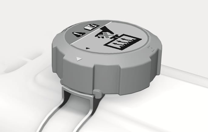 Stellen Sie sicher, dass die kleinen Nasen im Kühlmitteldeckel sicher eingerastet sind.