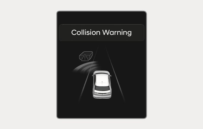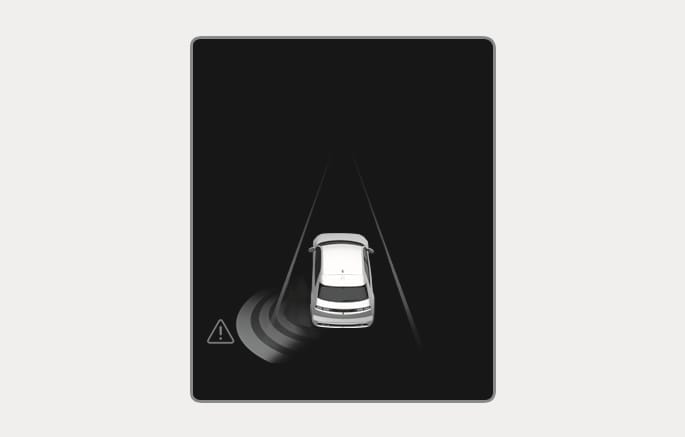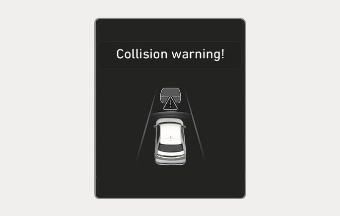 Um den Fahrer vor einer Kollision zu warnen, erscheint die Warnmeldung „Kollisionsgefahr“ auf dem Kombiinstrument, ein Warnton wird ausgegeben und das Lenkrad vibriert.