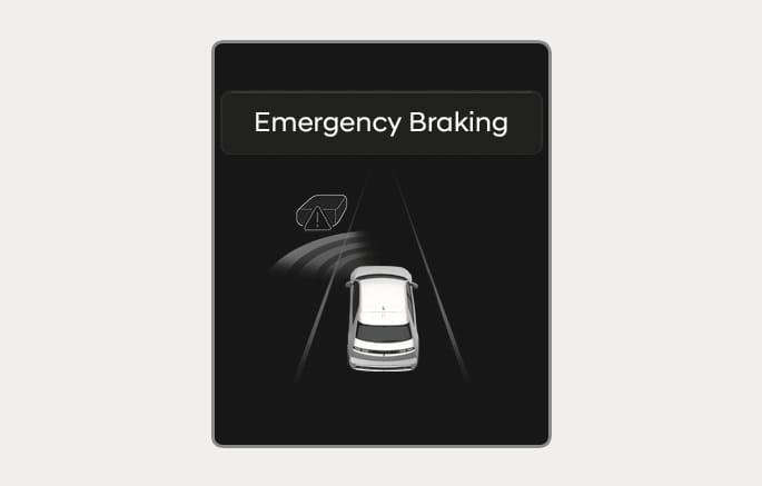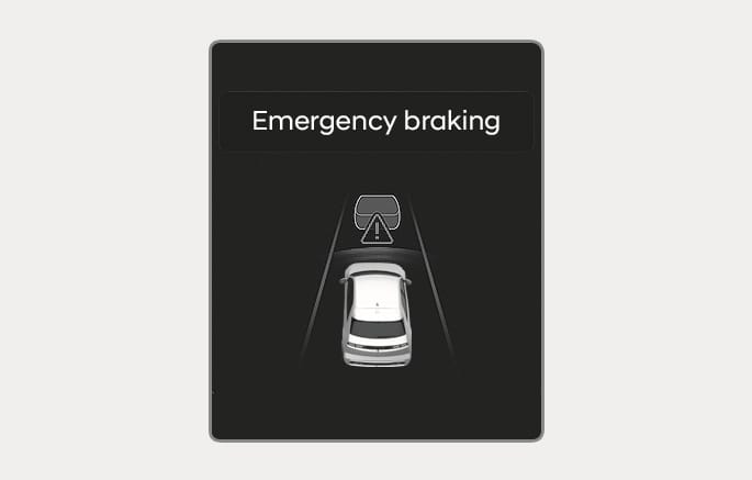 Um den Fahrer darauf hinzuweisen, dass eine Notbremsung unterstützt wird, erscheint die Warnmeldung „Notbremsung“ auf dem Kombiinstrument und es wird ein Warnton ausgegeben.