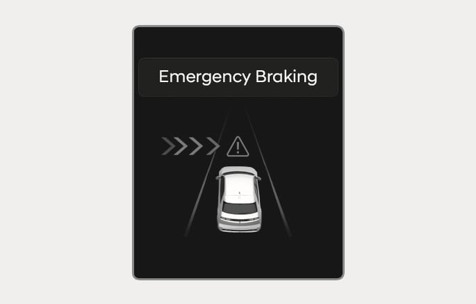 Wenn das Fahrzeug aufgrund einer Notbremsung angehalten wurde, erscheint die Warnmeldung „Fahren Sie vorsichtig“ auf dem Kombiinstrument. Zur Sicherheit sollte der Fahrer sofort das Bremspedal betätigen und die Umgebung prüfen.