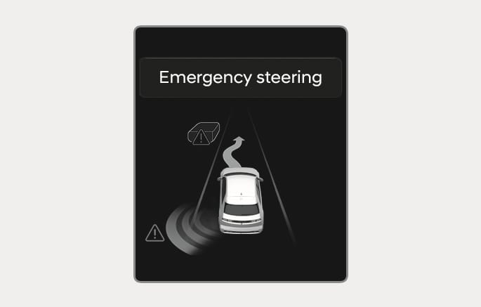Die Ausweichlenkunterstützung warnt den Fahrer und steuert das Fahrzeug mithilfe der „Notlenkung“.