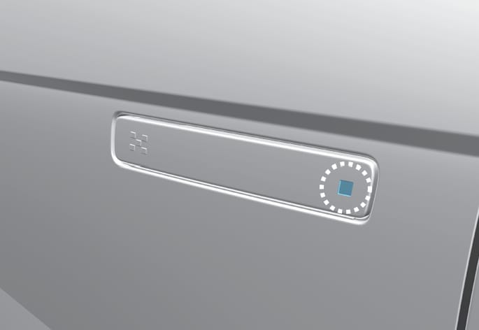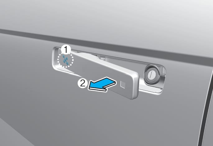 Drücken Sie den Knopf am vorderen Außentürgriff (graviertes Teil), wenn Sie den Smart-Key mit sich führen, um alle Türen zu entriegeln.